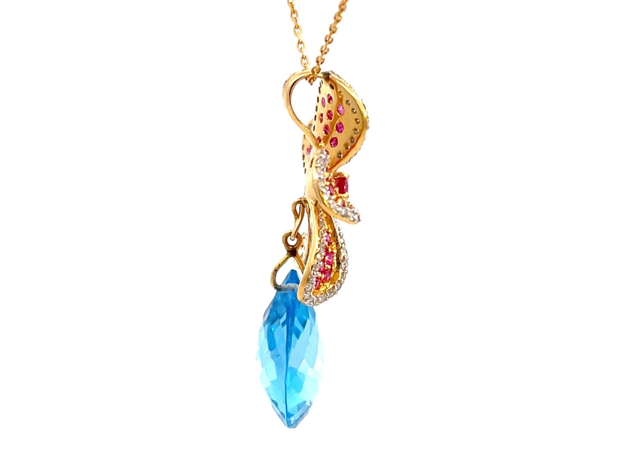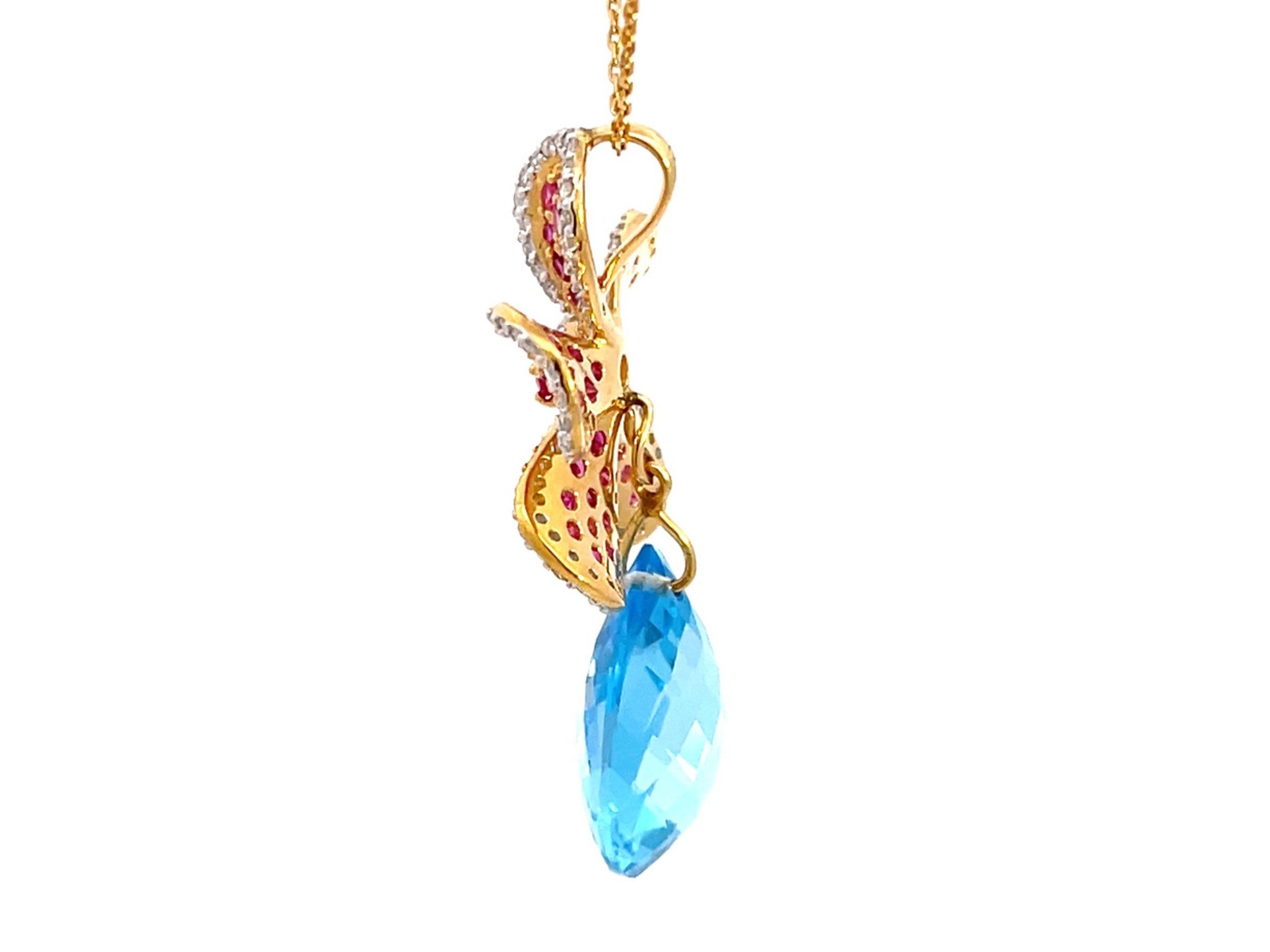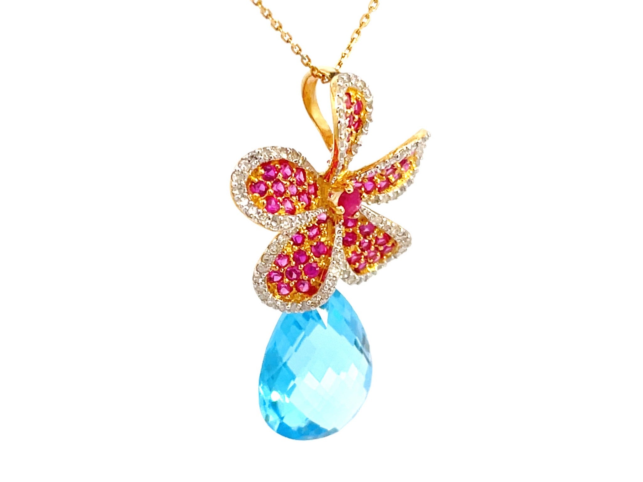 Style: Ruby Diamond Flower Necklace with Topaz Drop