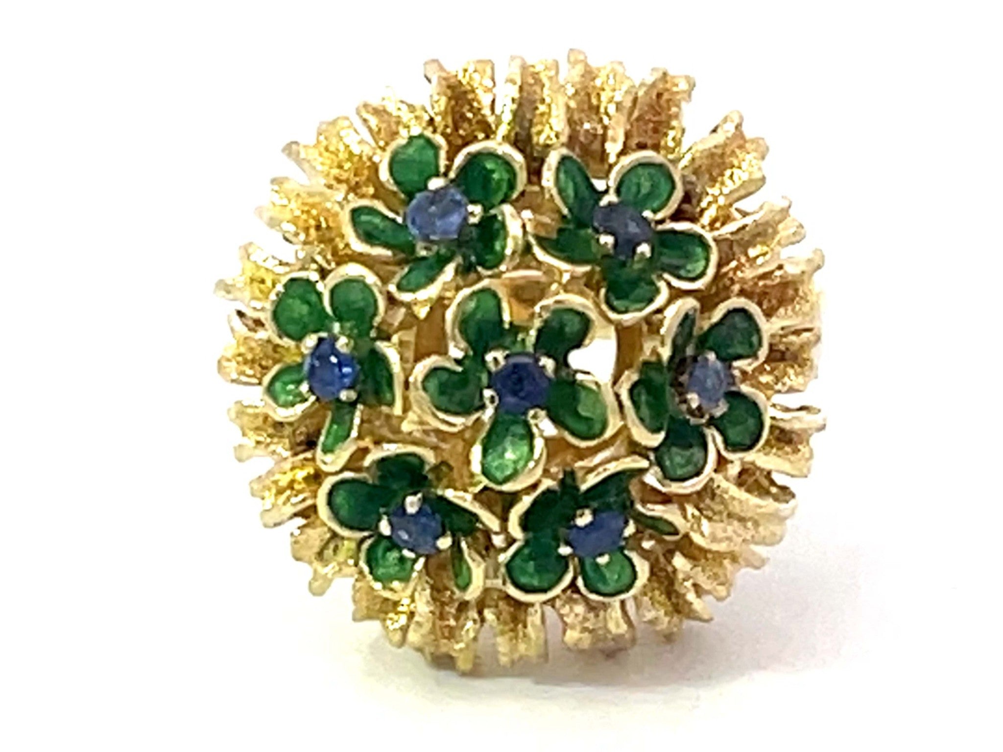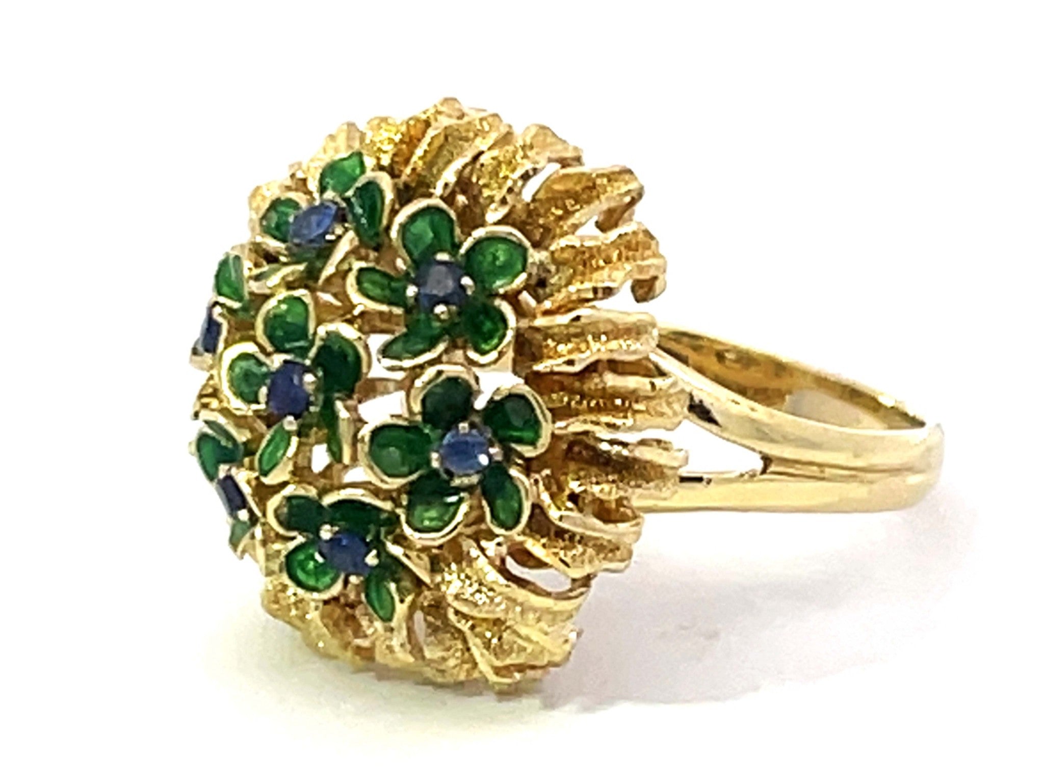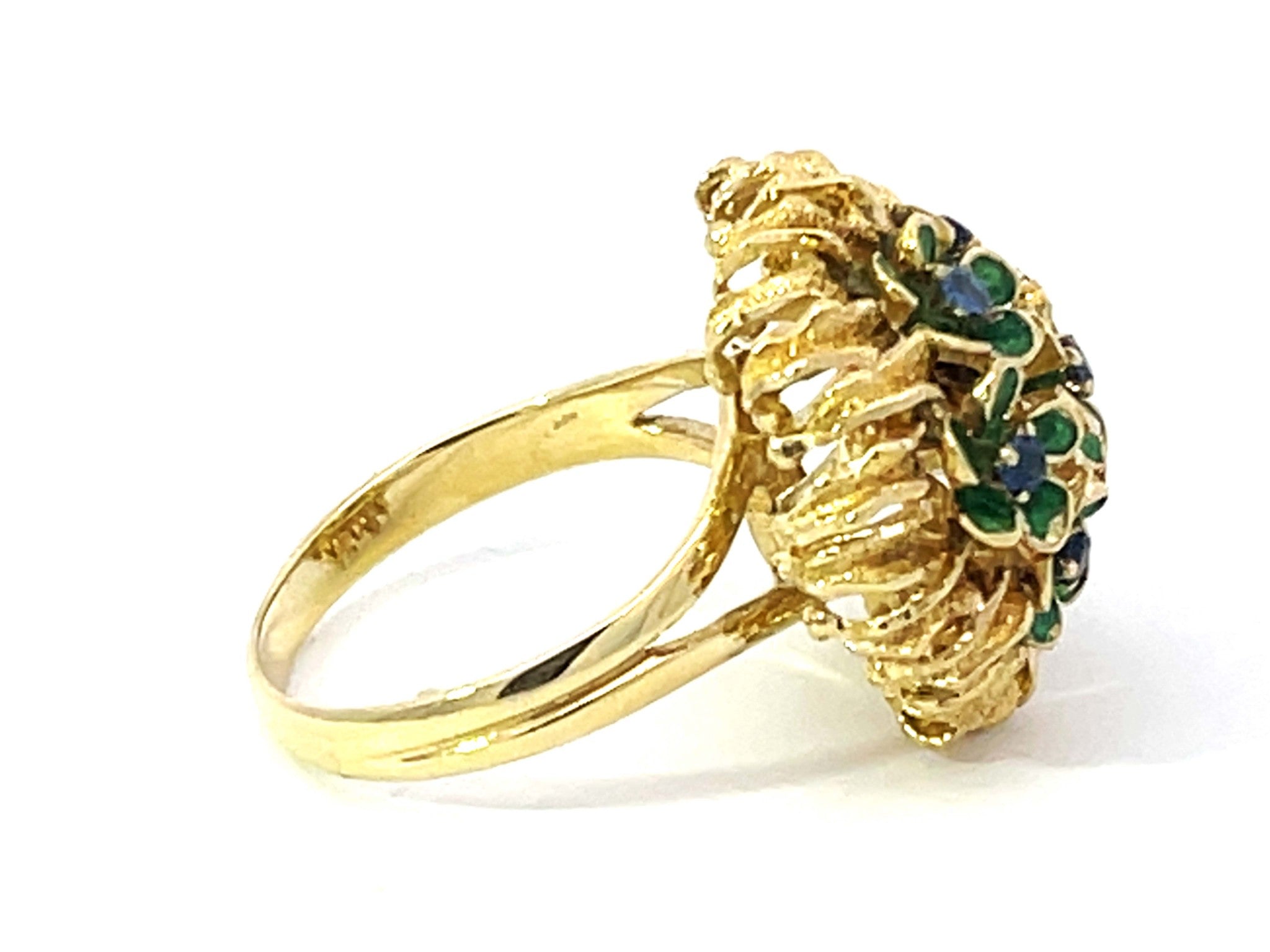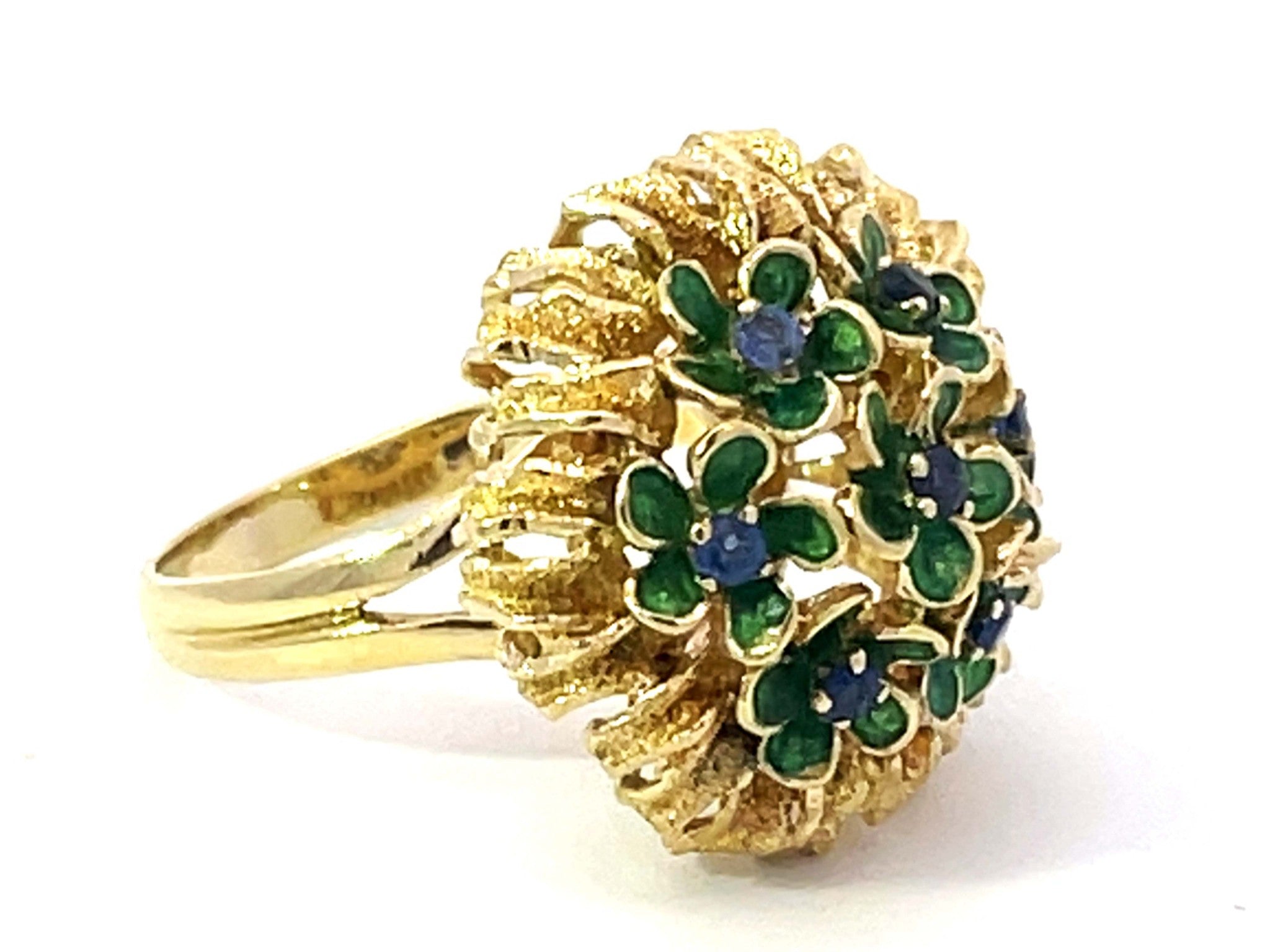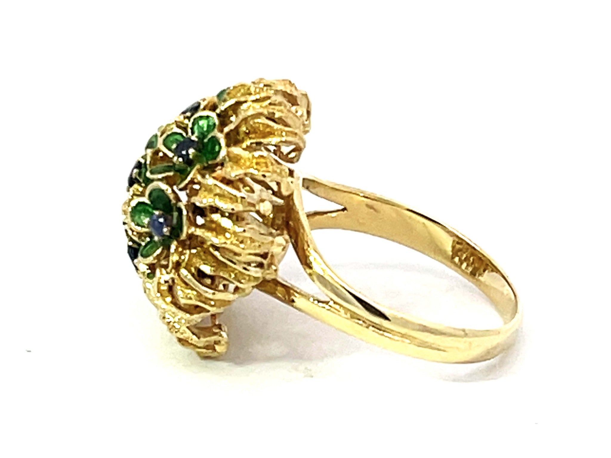Item Specifications:Metal: 18K Yellow GoldTotal Weight: 8.8 GramsRing Size: 6.75Gemstone Specifications:Gemstones: 7 blue sapphiresSapphire Carat Weight: ~ 0.15 caratsCondition: Preowned, excellentStamped: "750" " "K18" "Italy"