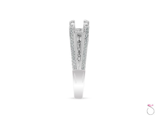 This fine classy Diamond Solitaire Ring is tastefully made with great diamonds and fine workmanship. Displaying complex designs graced with dazzling 8 baguette side stones 4 each side, plus Micro-pave diamonds for a 0.92 total carat weight diamonds set on 18K white gold ring setting.
