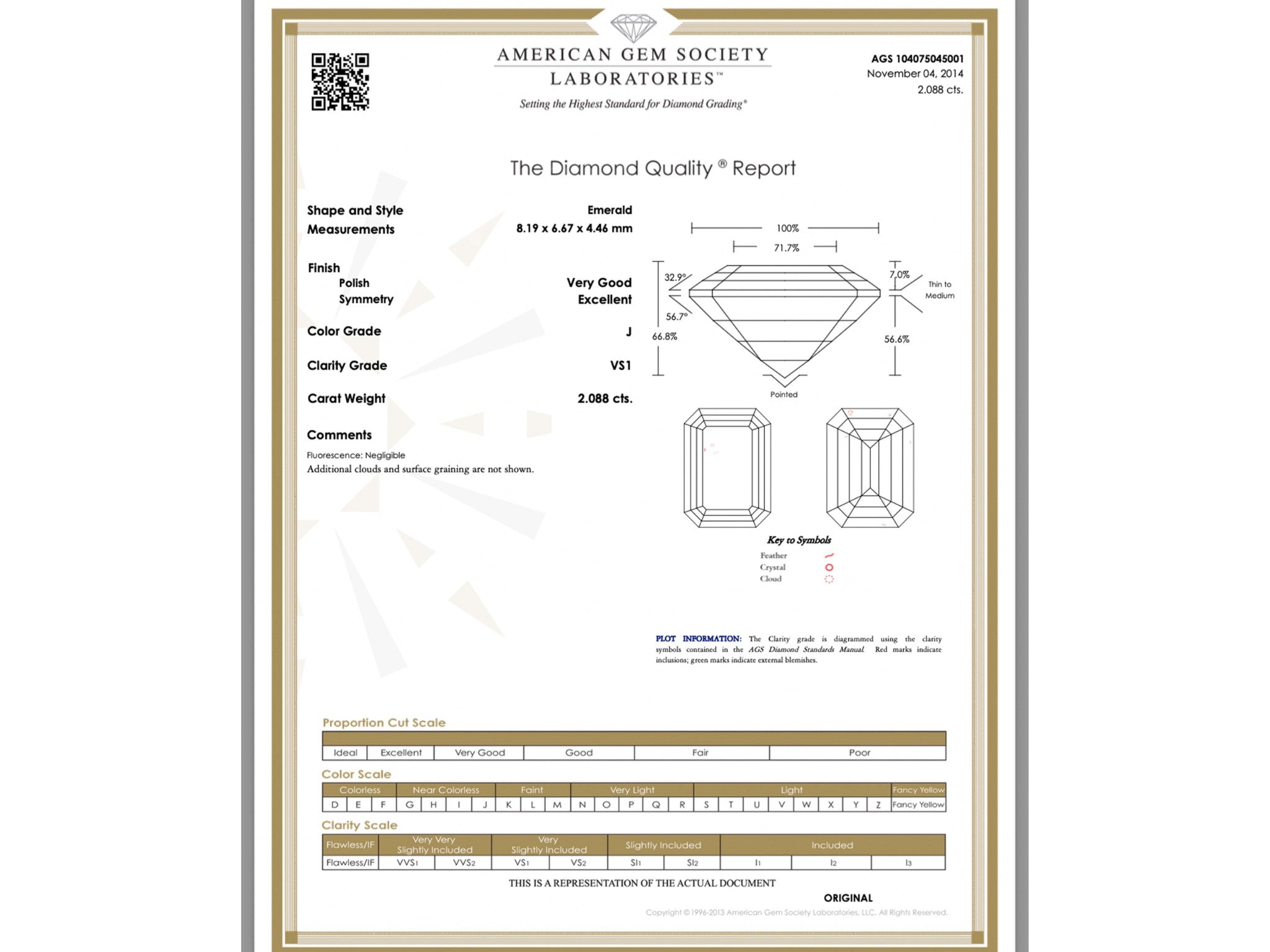 Diamond Carat Weight: emerald cut is 2.09 ct and 0.57 ct brilliant cut