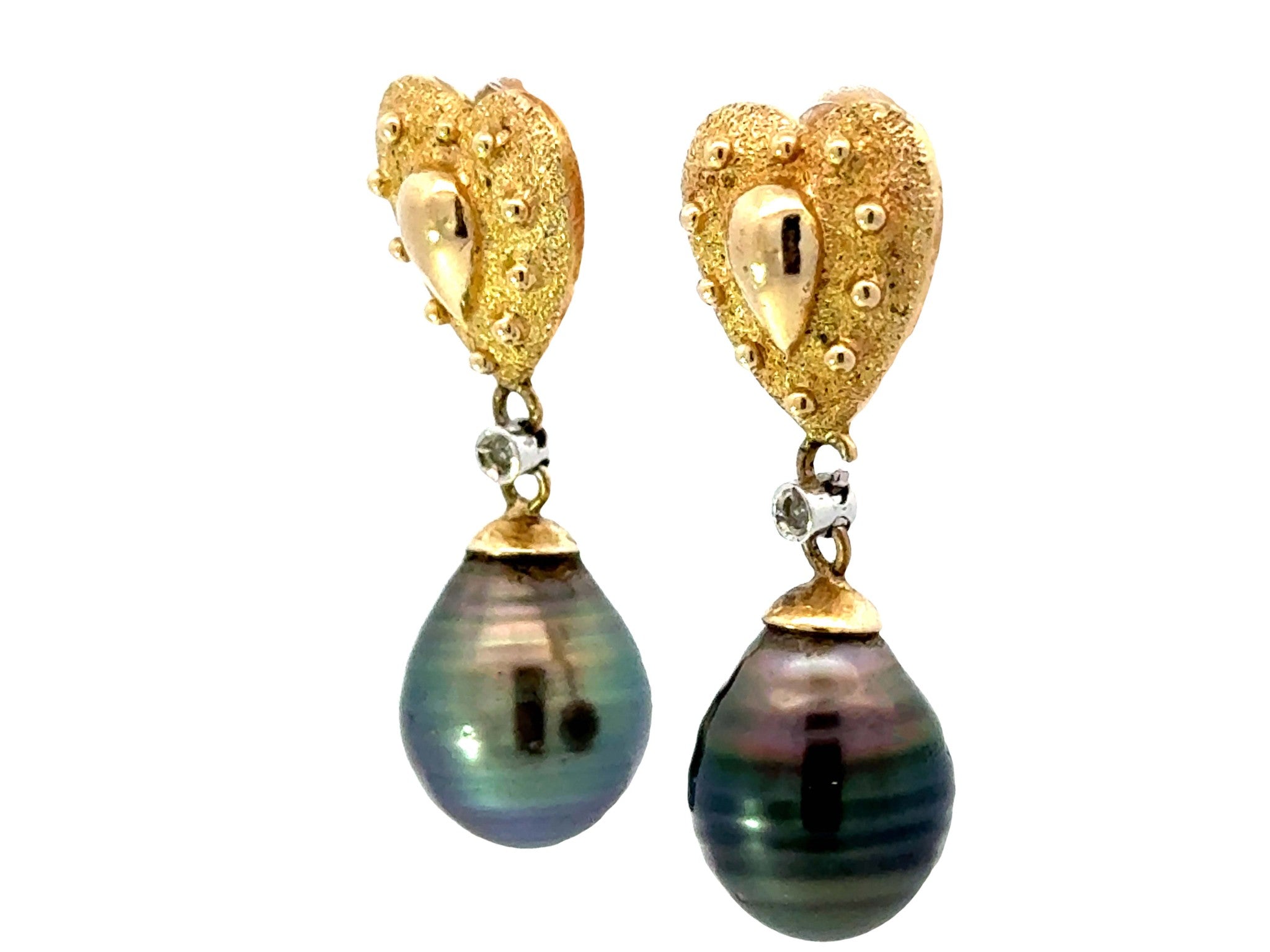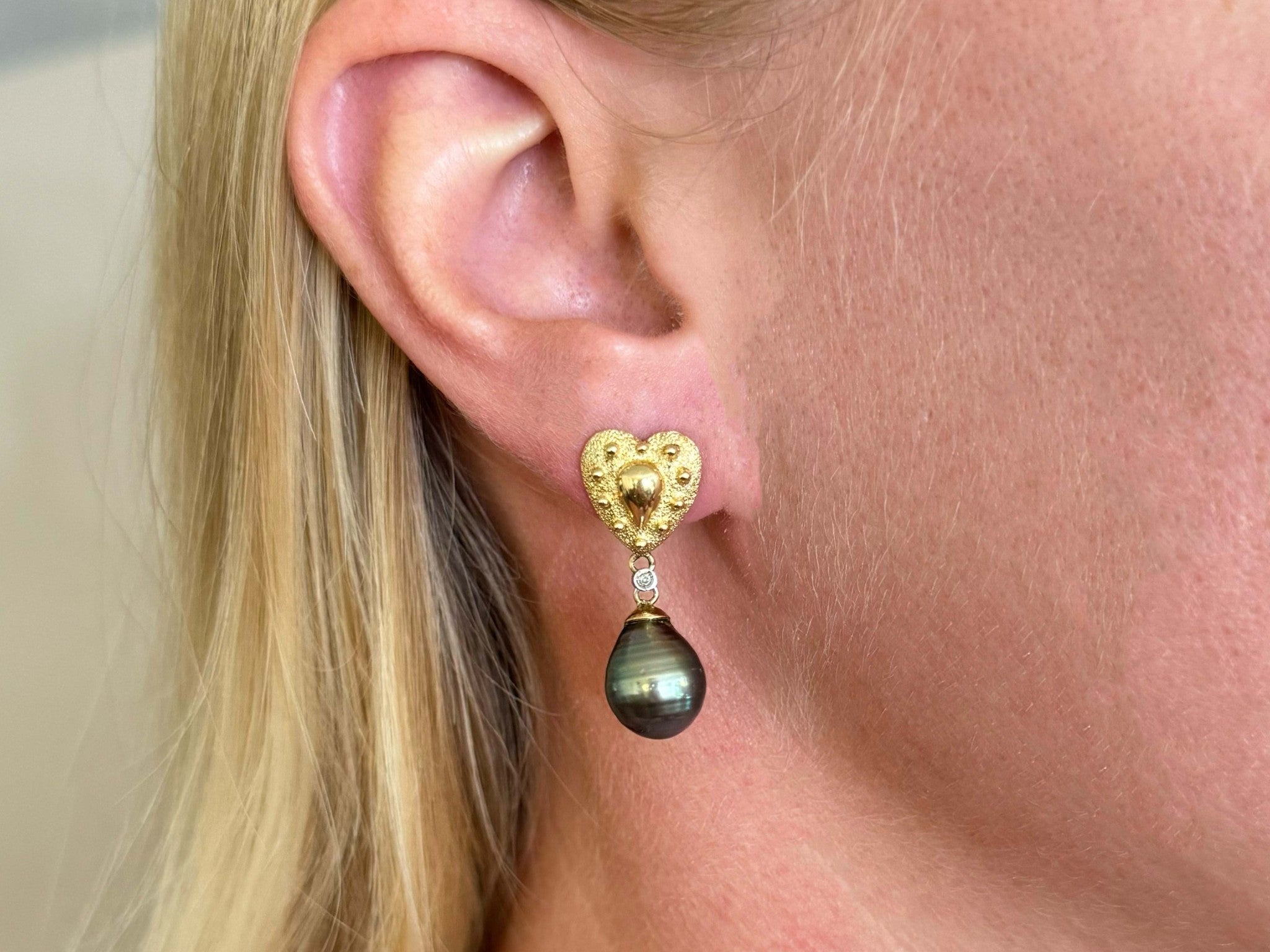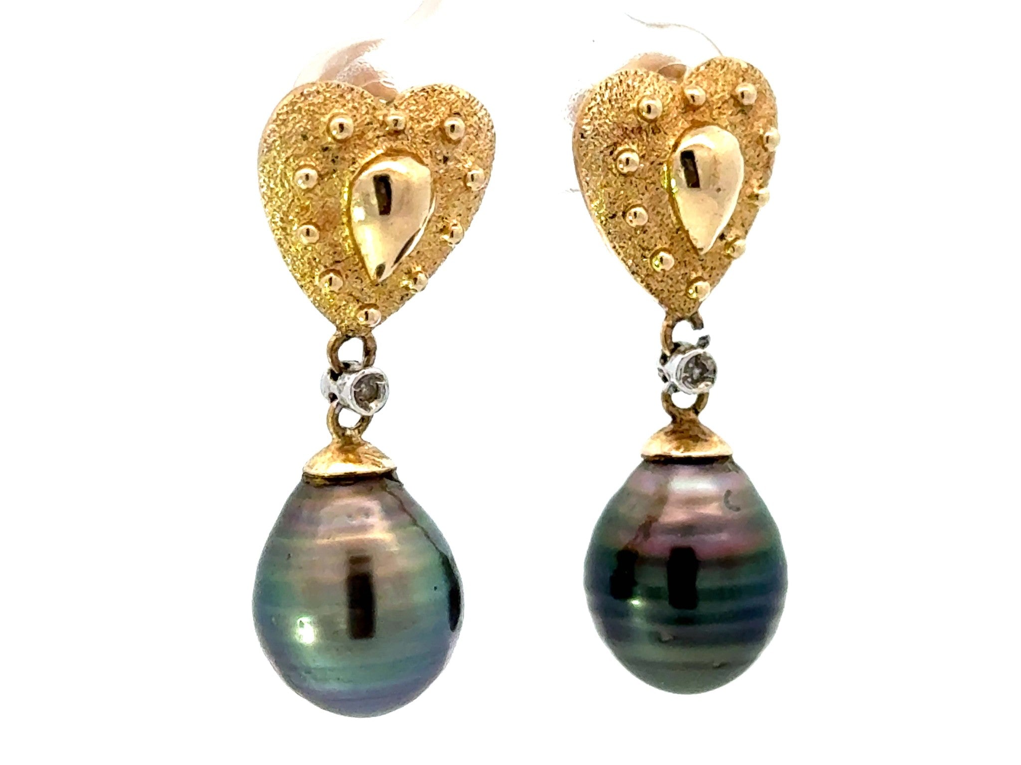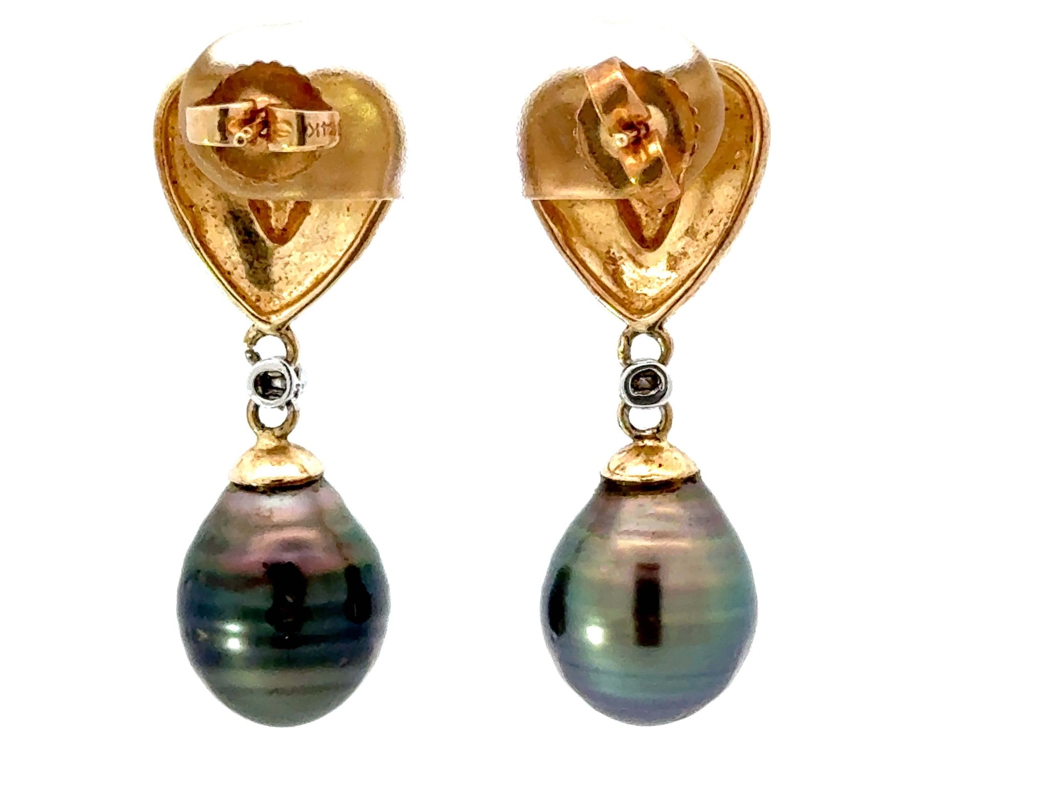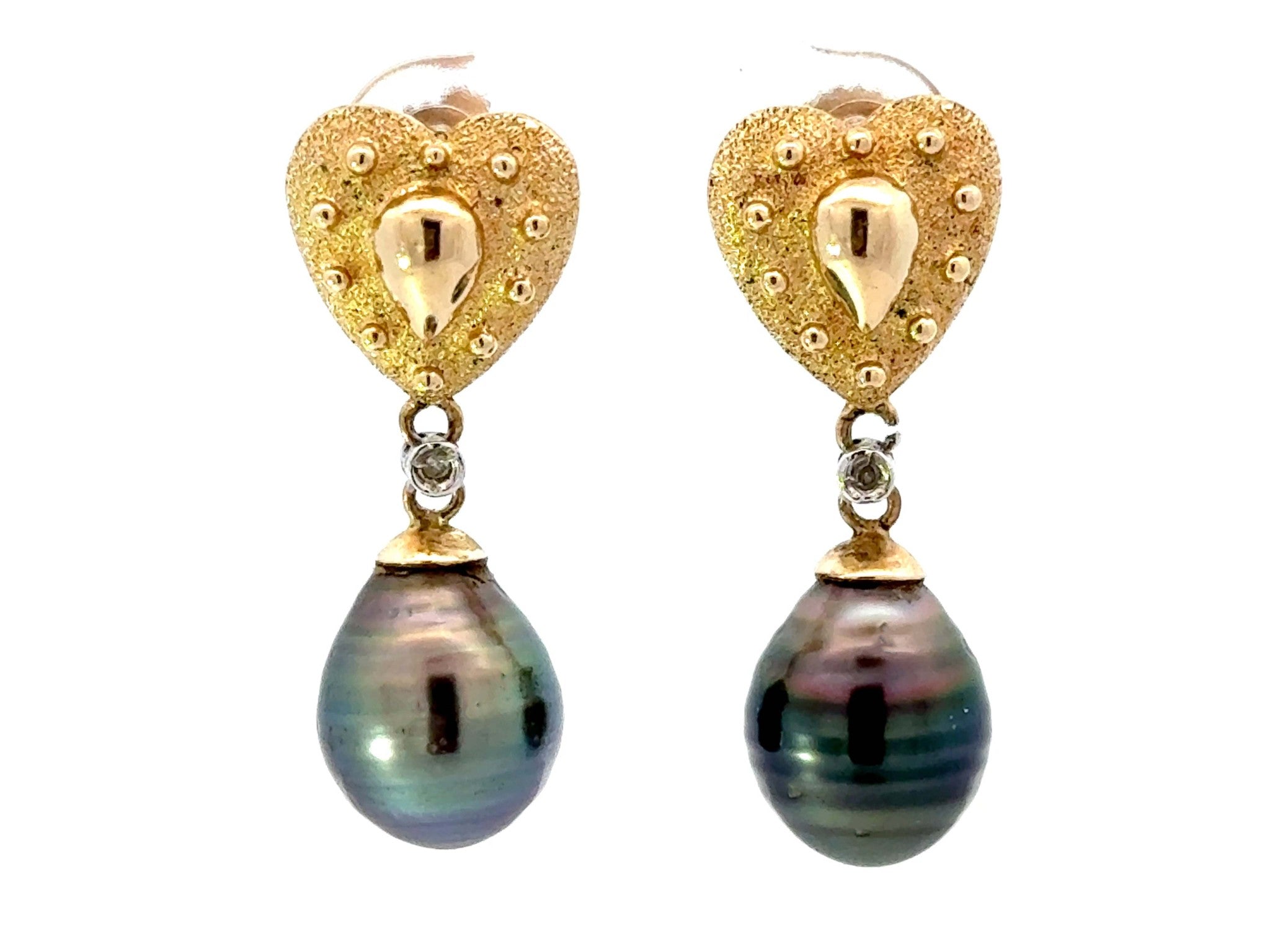Tahitian Pearl and Yellow Gold Heart Earrings 14K Yellow Gold