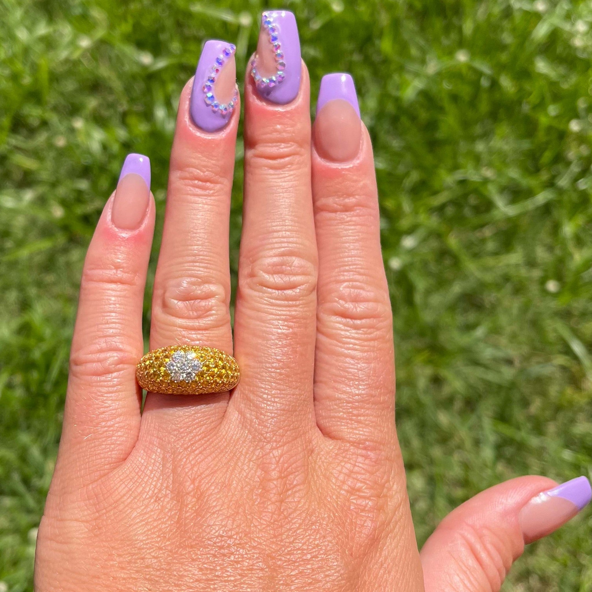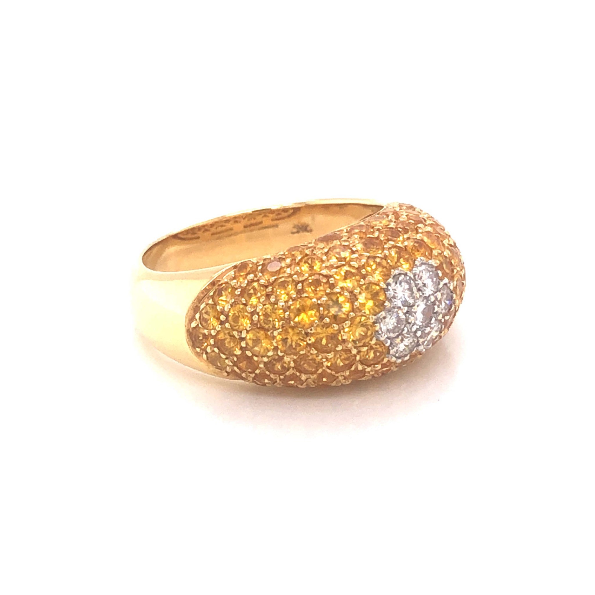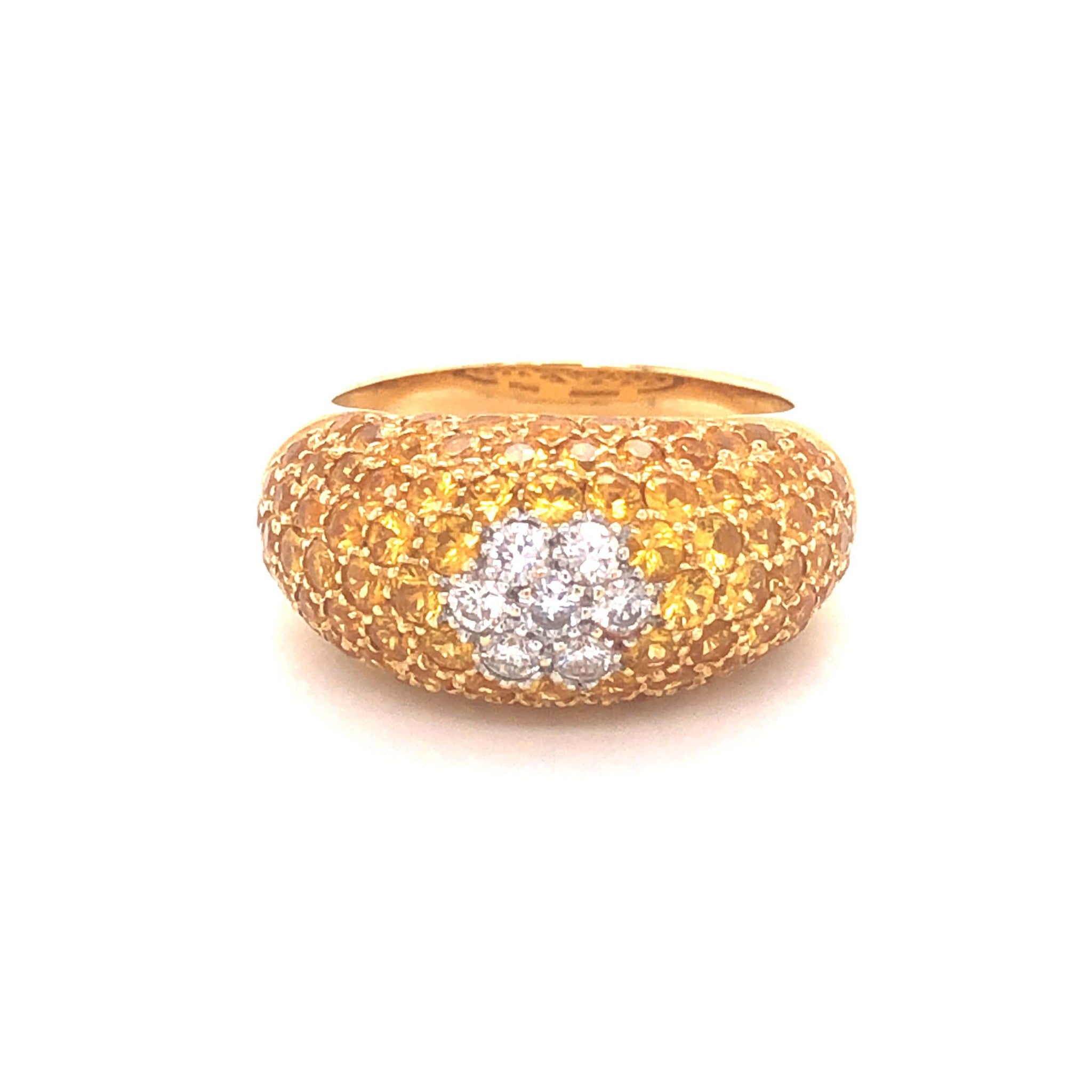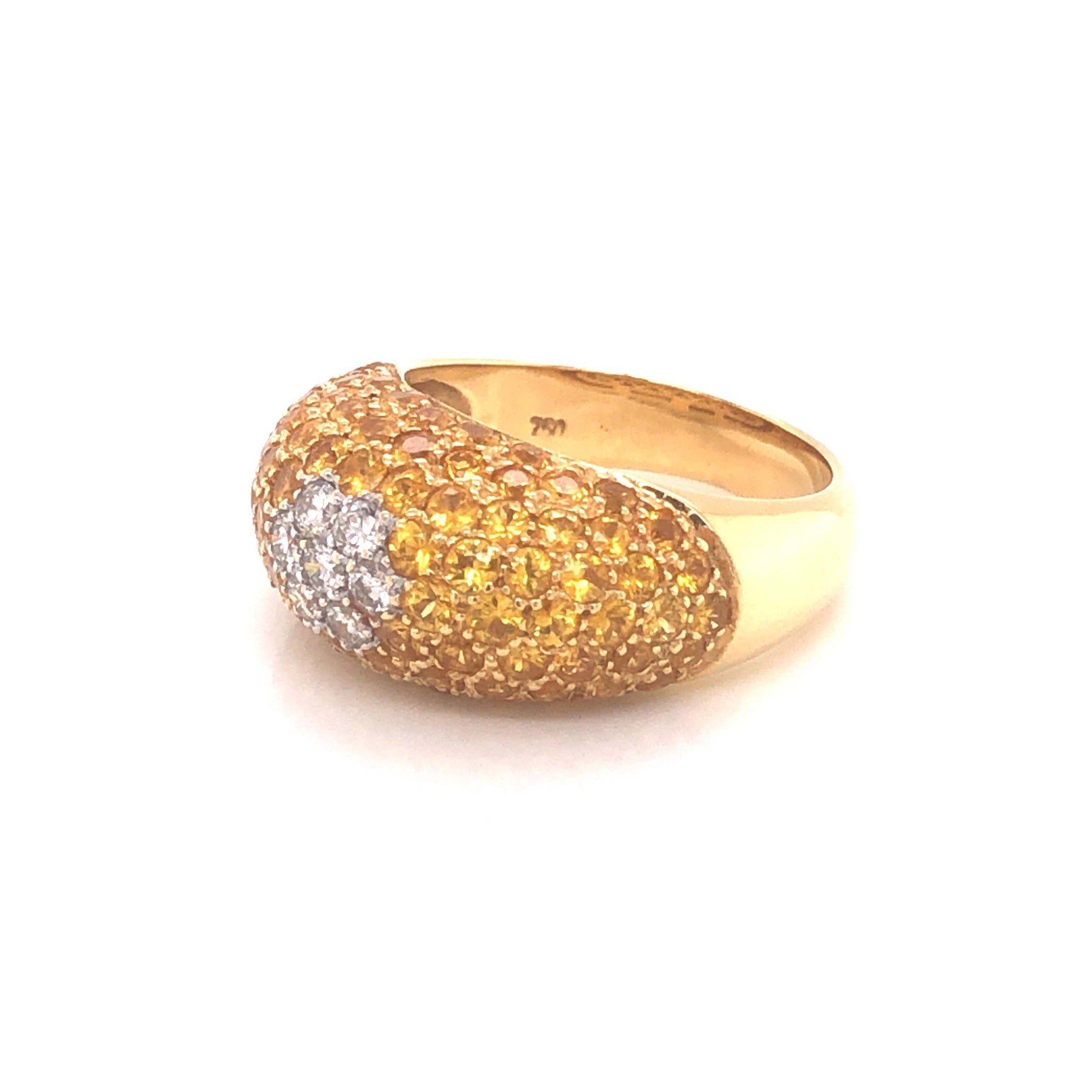 Le Vians Yellow Sapphire and Diamond Dome Ring -18k Yellow Gold. This ring is comprised of round yellow sapphires weighing a total of ~ 2.00 carats with 7 round brilliant diamonds...