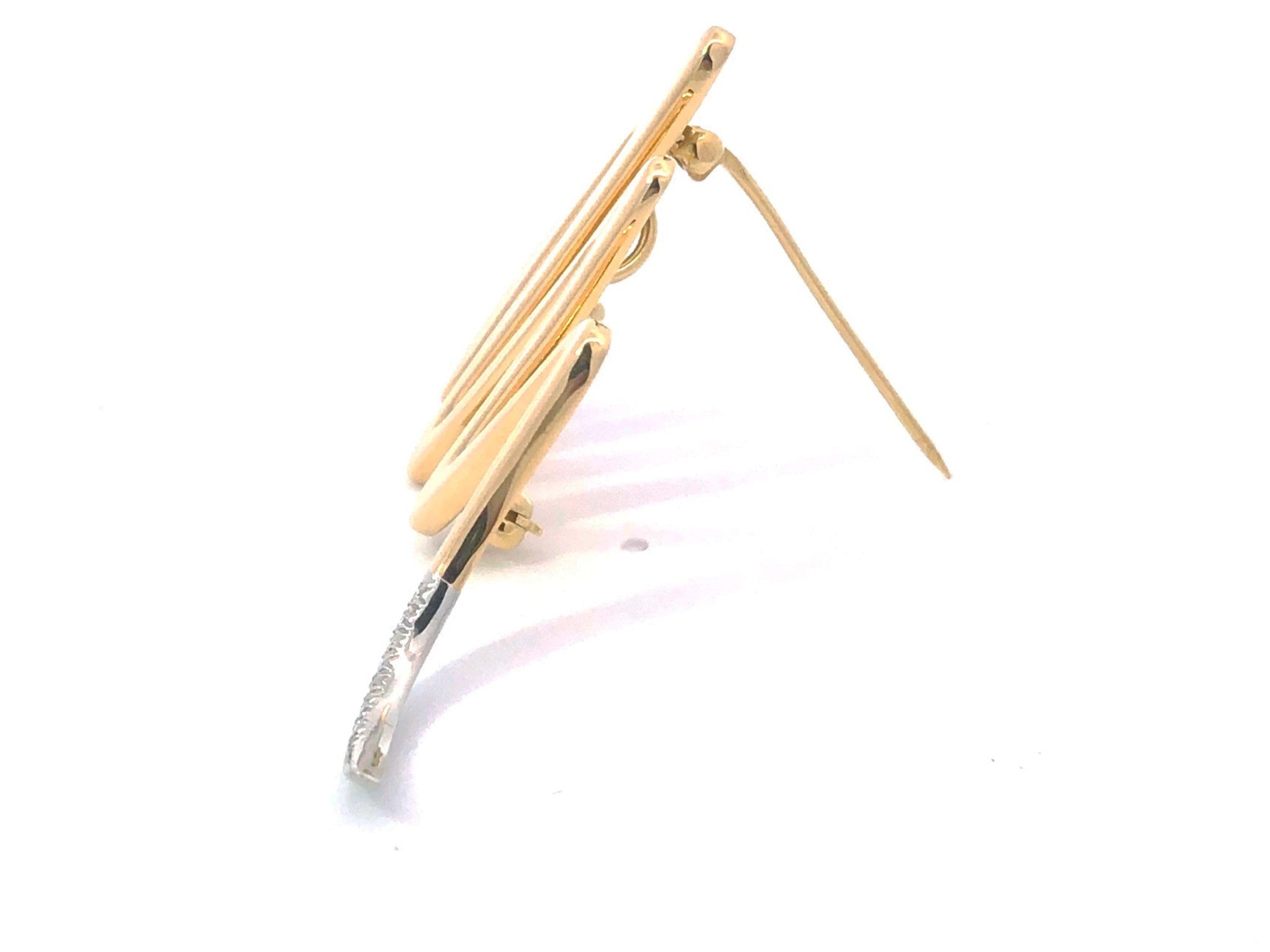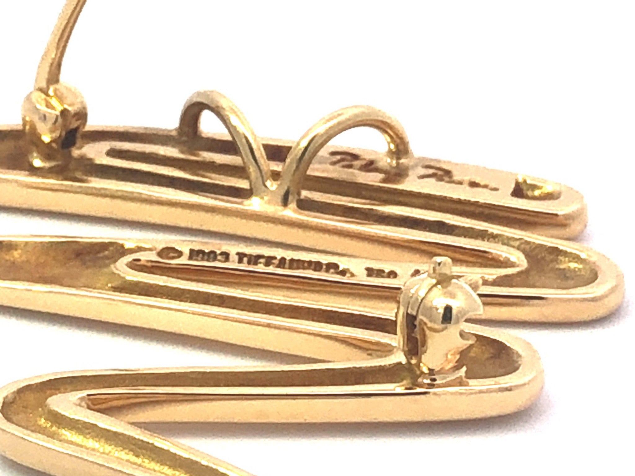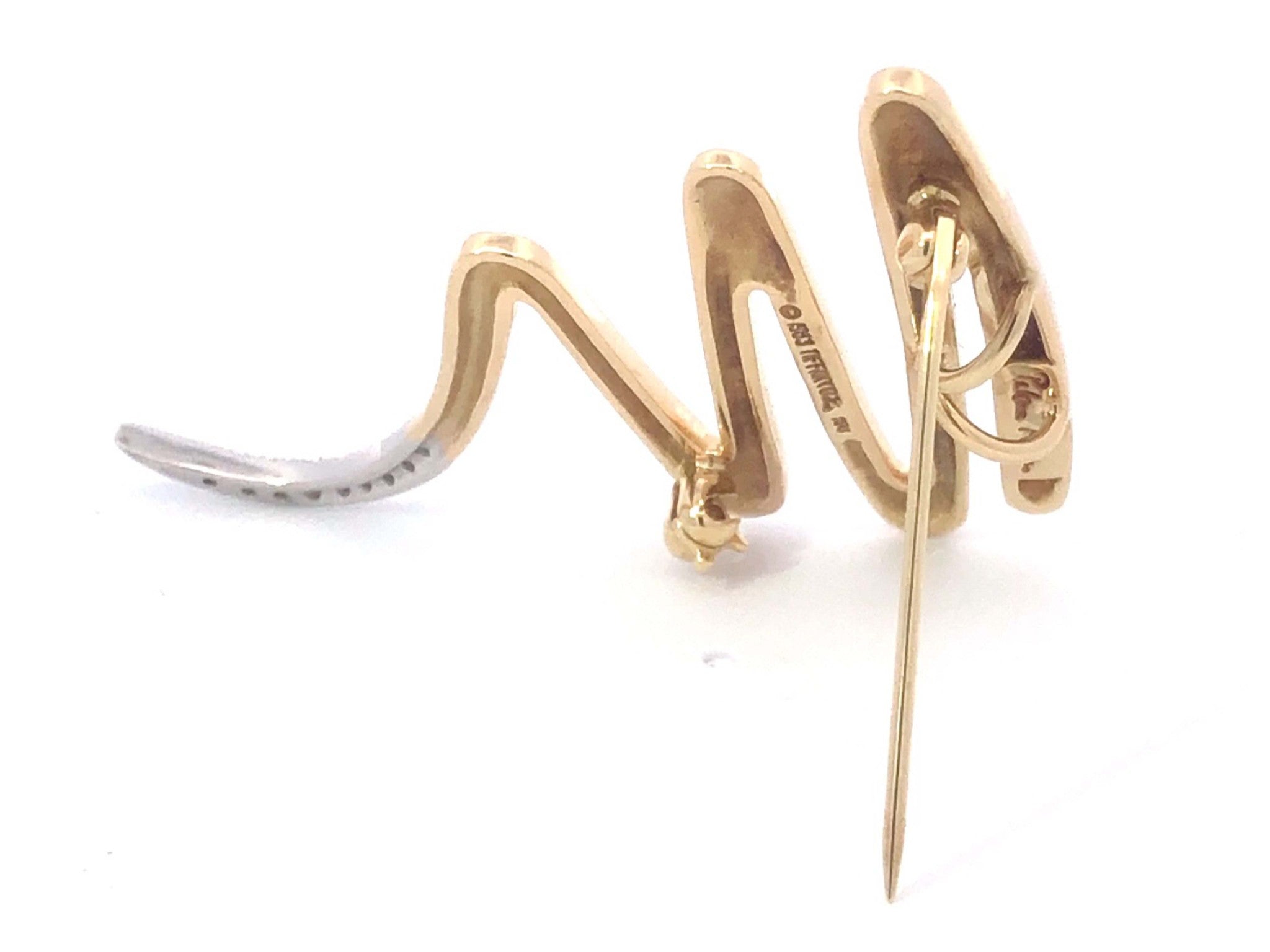 Tiffany & Co. 18k Gold Platinum Picasso Diamond Squiggle Brooch Pendant. This elegant brooch is crafted in 18K yellow gold and platinum. This beautiful brooch features 9 round brilliant cut diamonds D-F in color and VS in clarity, weighing ~0.08 carats. The brooch measures ~43 mm long and ~32 mm wide. The total weight is 9.2 grams. Stamped "750" and hallmarked "Paloma Picasso" and "1983 Tiffany & Co". This is a vintage brooch in excellent condition.