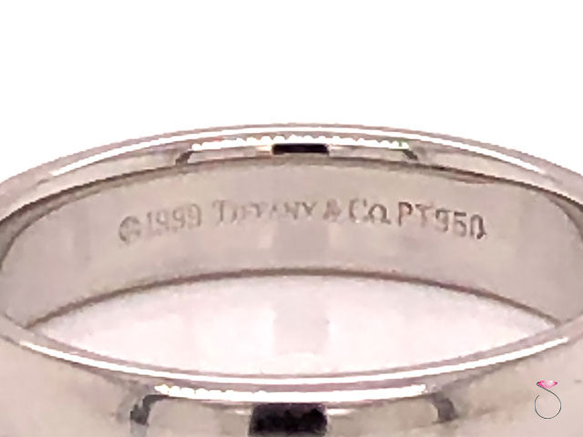 Authentic Tiffany & Co. half round classic wedding band. This band is beautifully crafted in platinum 950 with high polish finish. The band is 4.45 mm wide.  The band is hallmarks "Tiffany &Co" "1999" and stamped "PT950" on the inside. This is a pre-owned Tiffany band in excellent condition. The band is size 7, total weight 8.50 grams