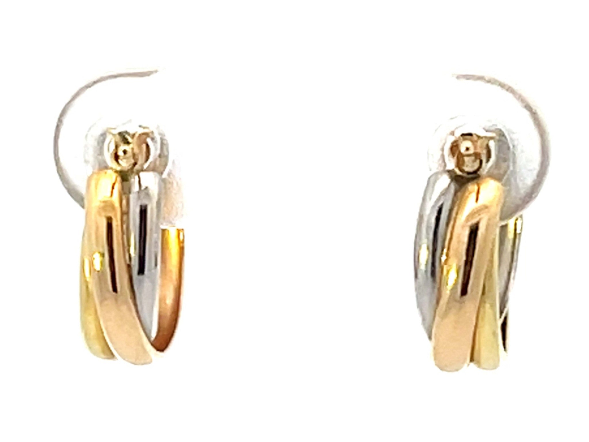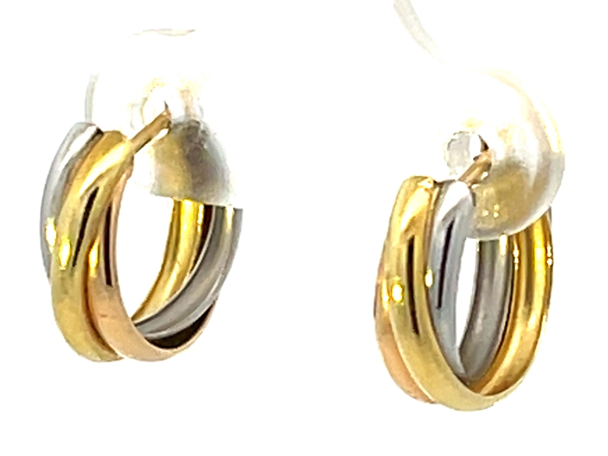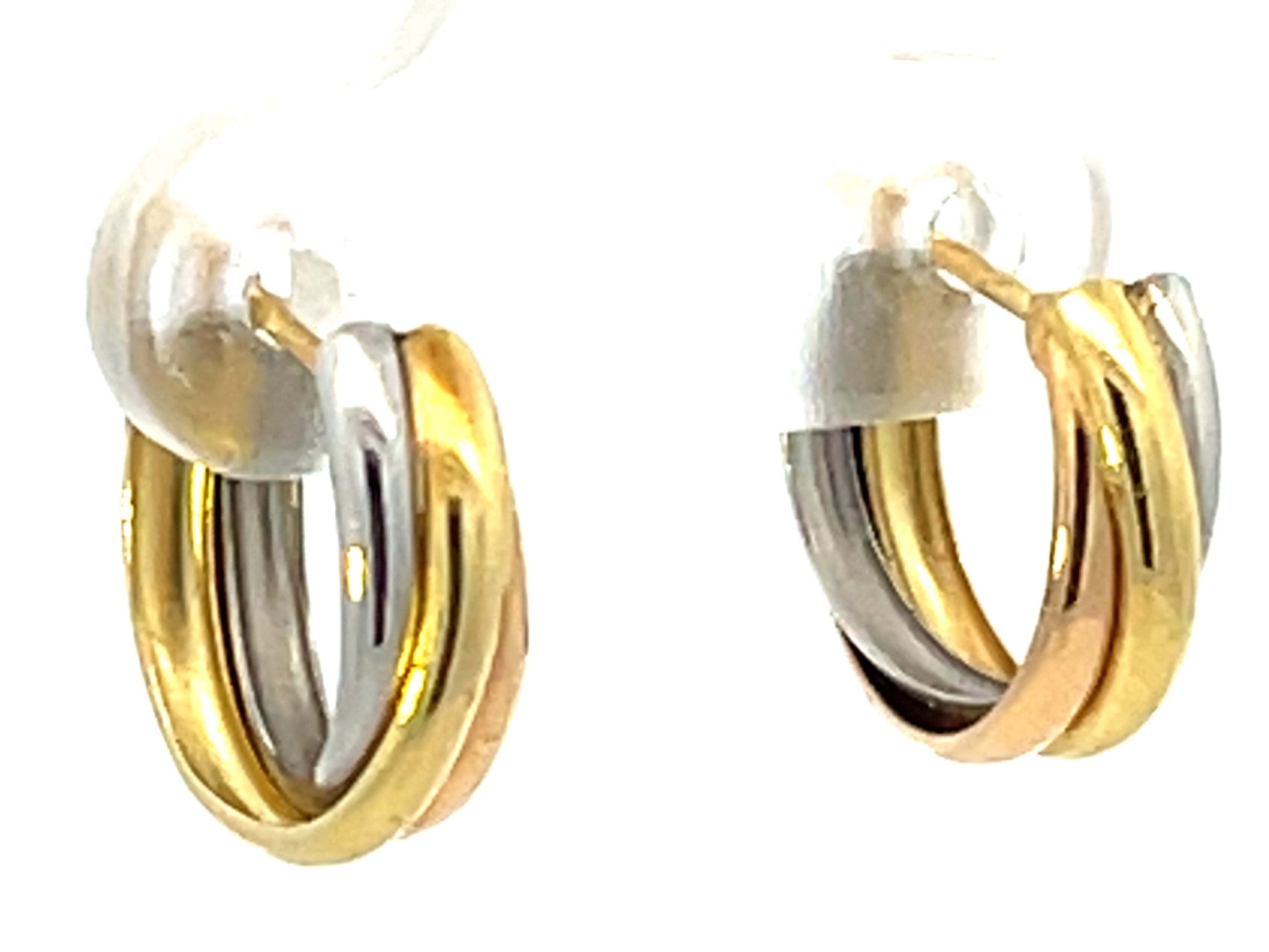 Trinity Three Toned Small Hoop Earrings 18k Gold and Platinum