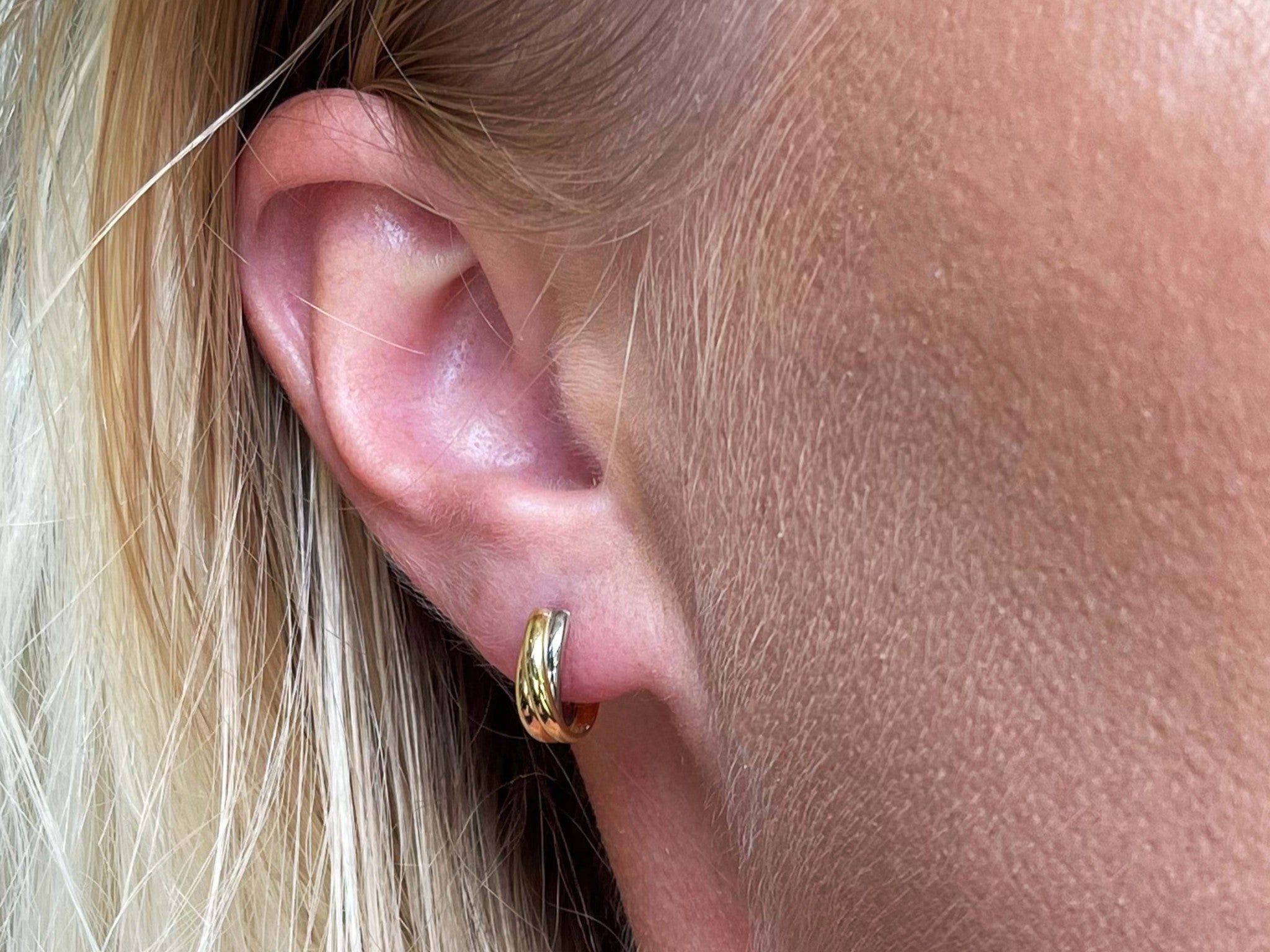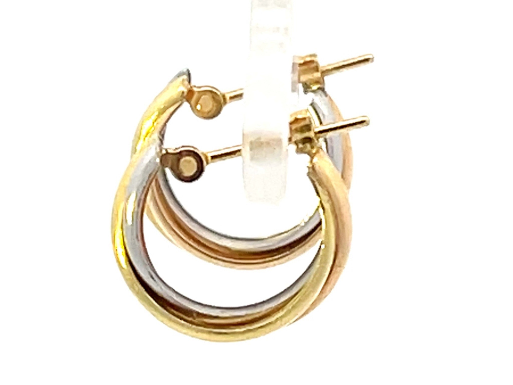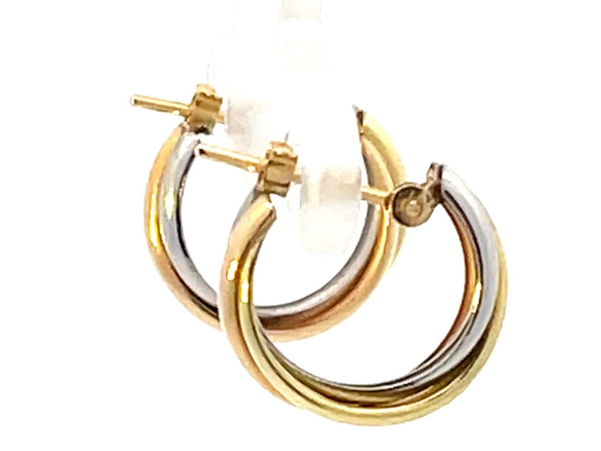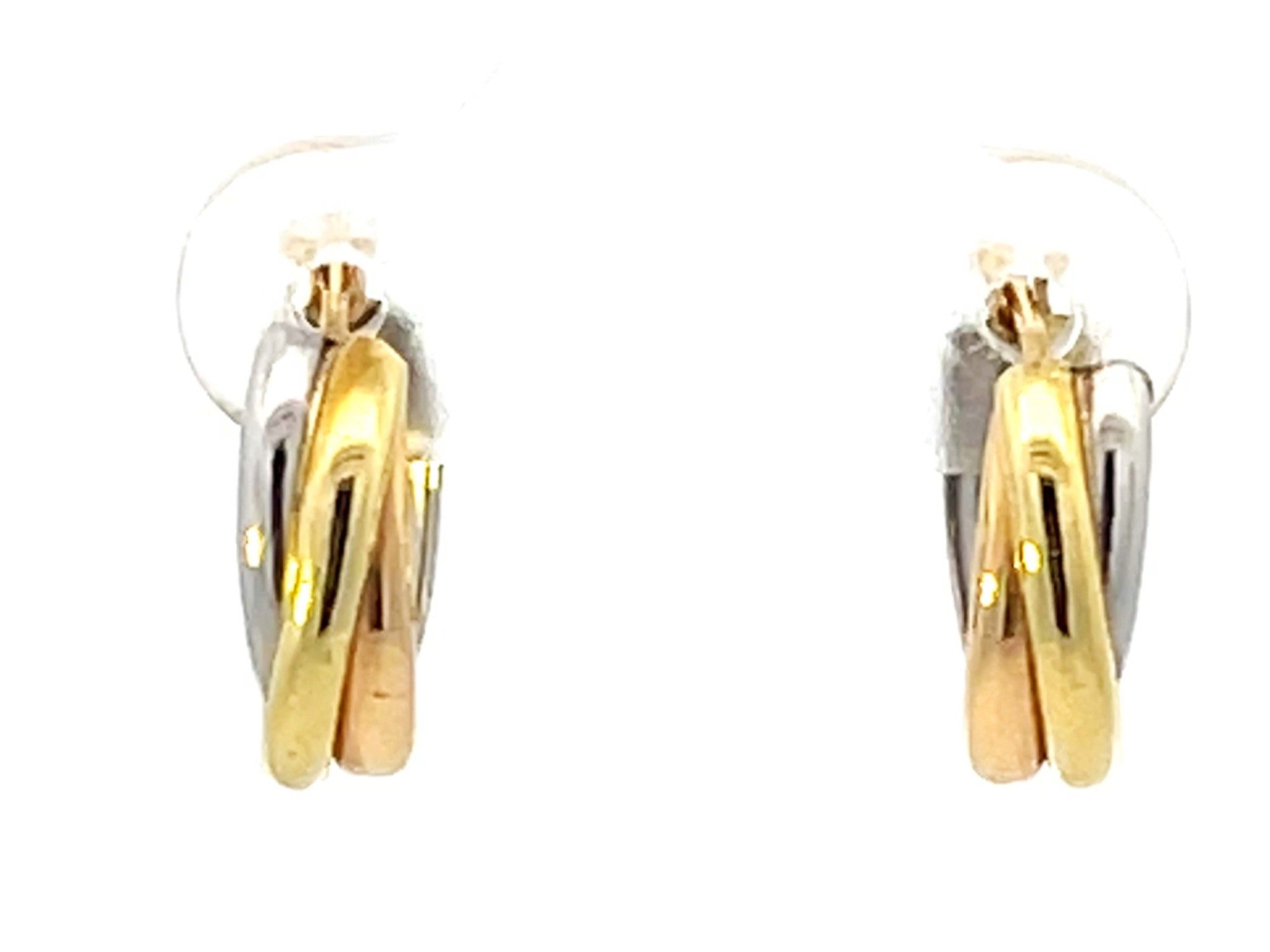 Trinity Three Toned Small Hoop Earrings 18k Gold and Platinum