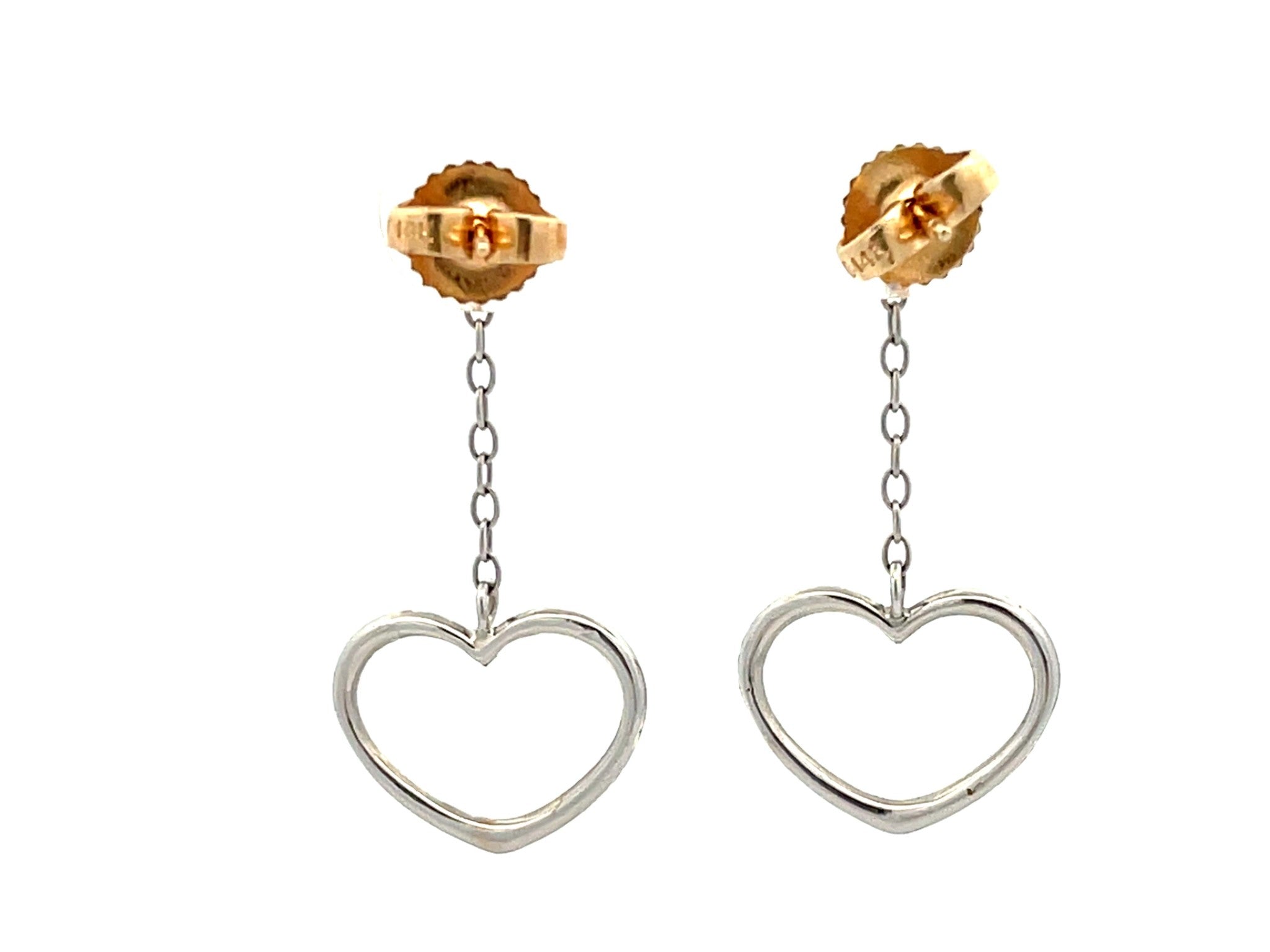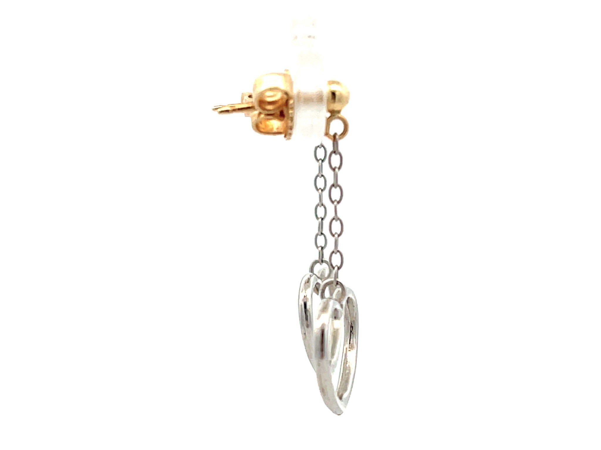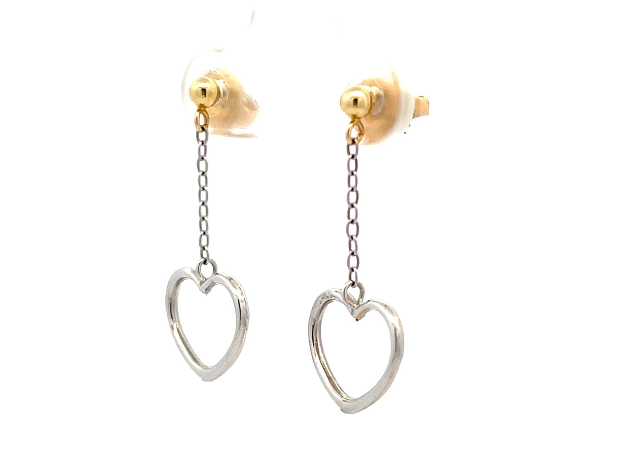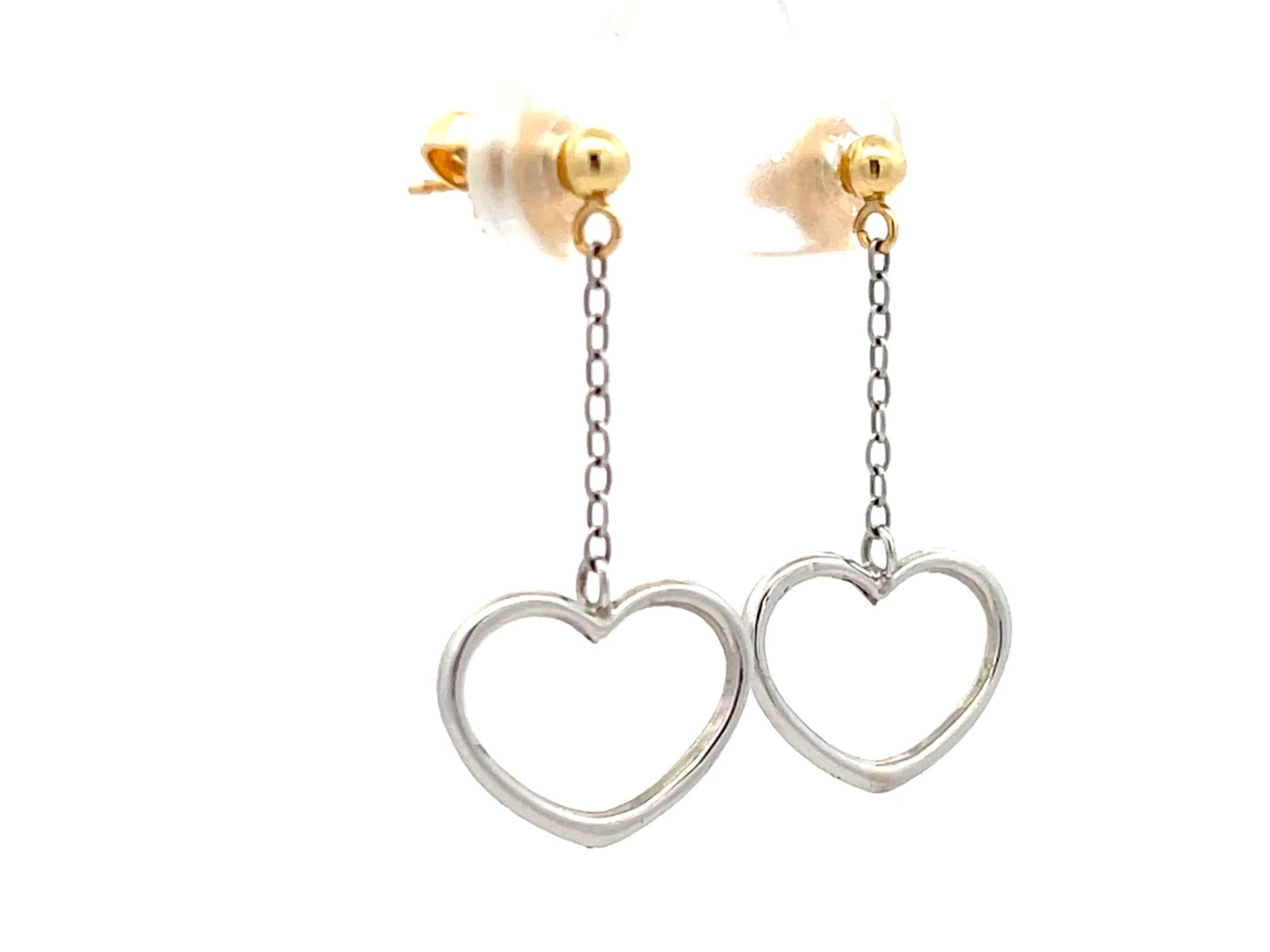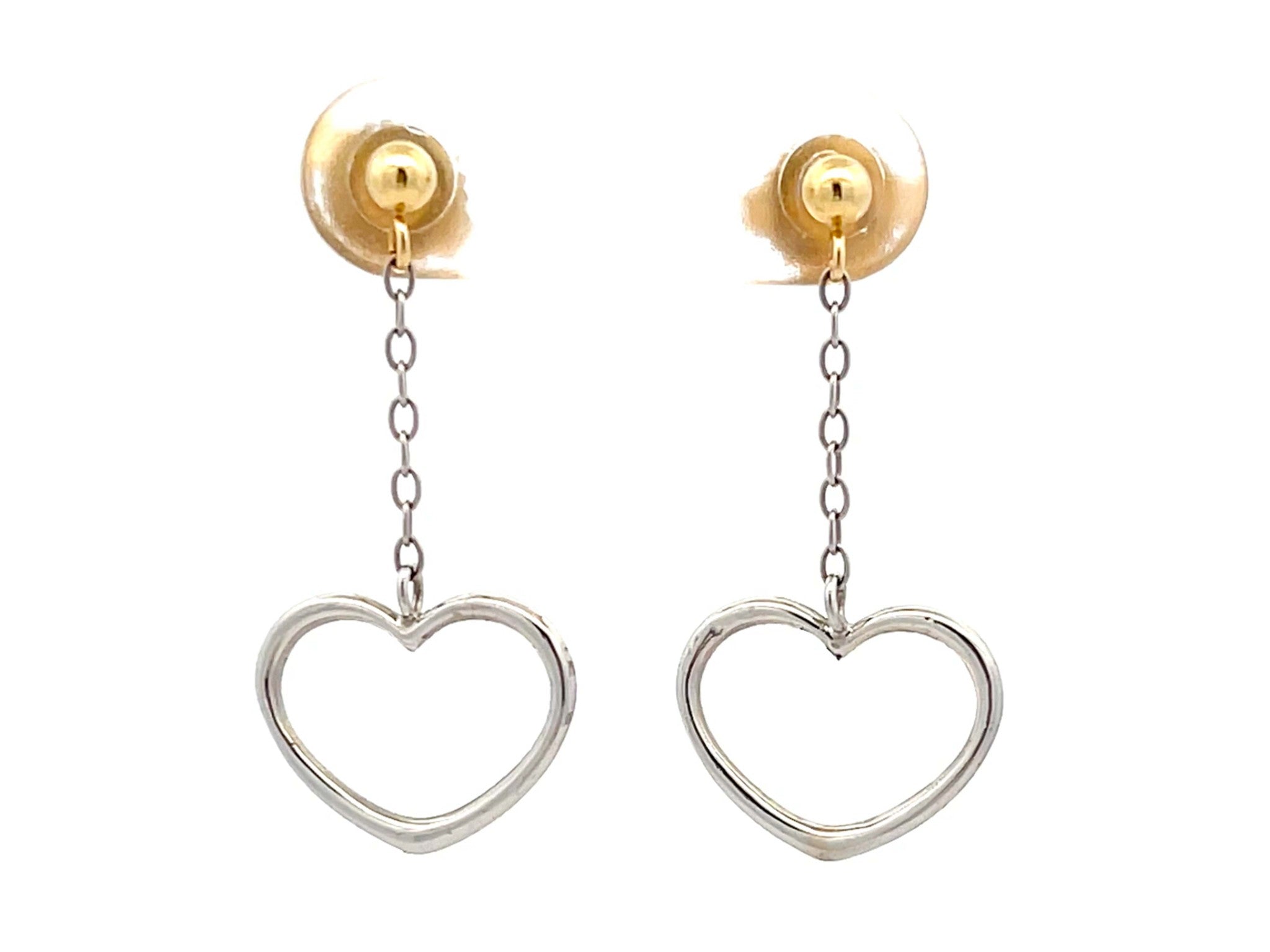 Two Toned Gold Dangly Heart Earrings
