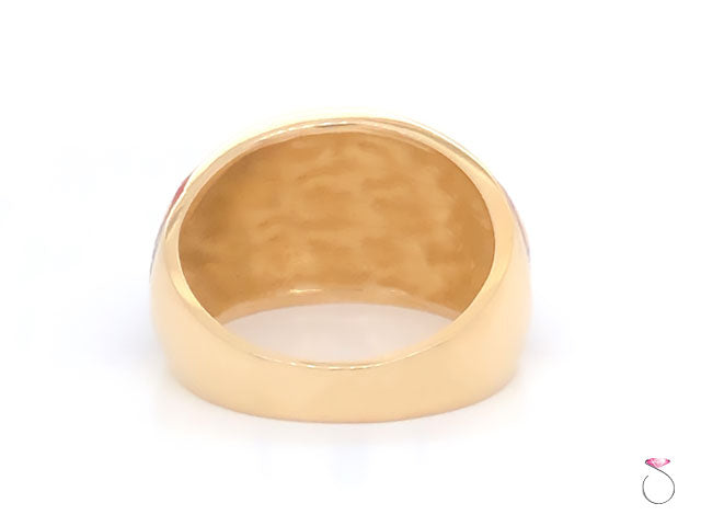 Vintage Designer MAZ Large Red Enameled Dome Ring in 14k Yellow Gold
