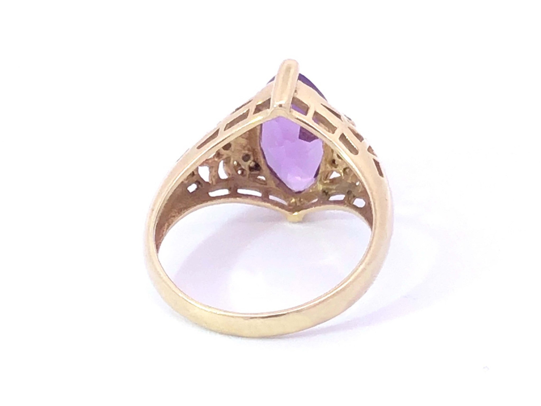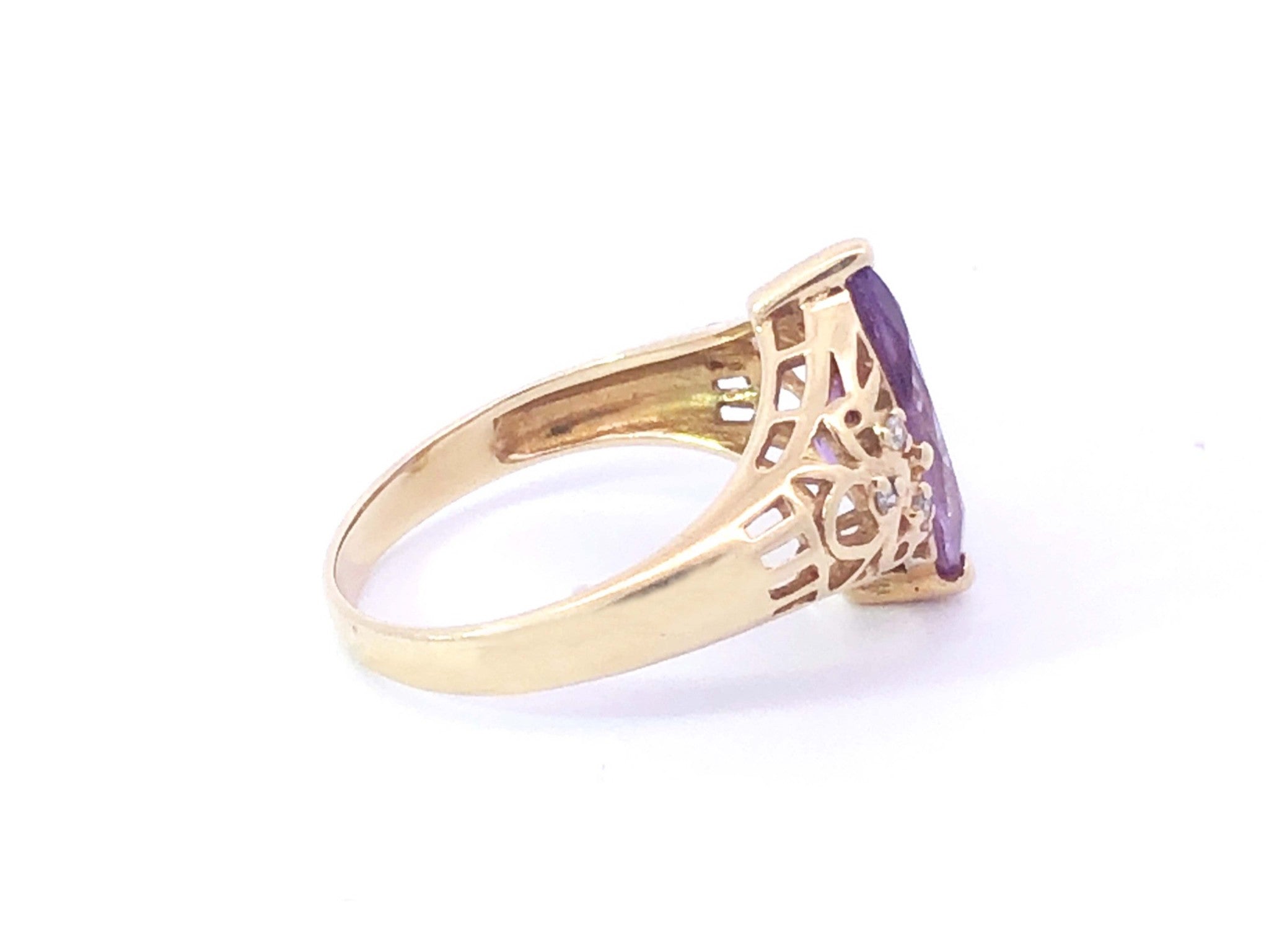 Vintage Marquise Amethyst & Diamond Ring in 14K Yellow Gold