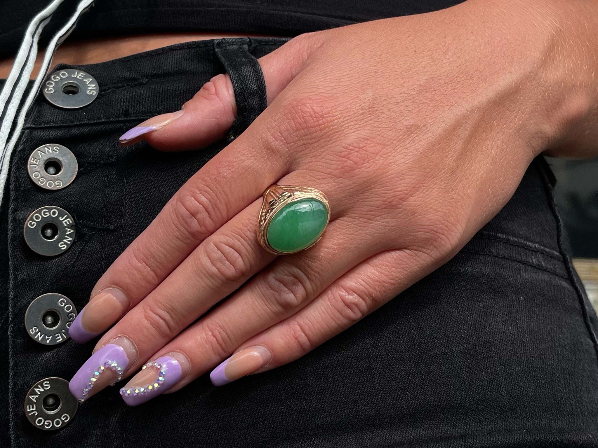 (Actual color of jade may slightly vary depending on screen calibration, lighting or camera settings. Please see image of ring on hand for more accurate color.)