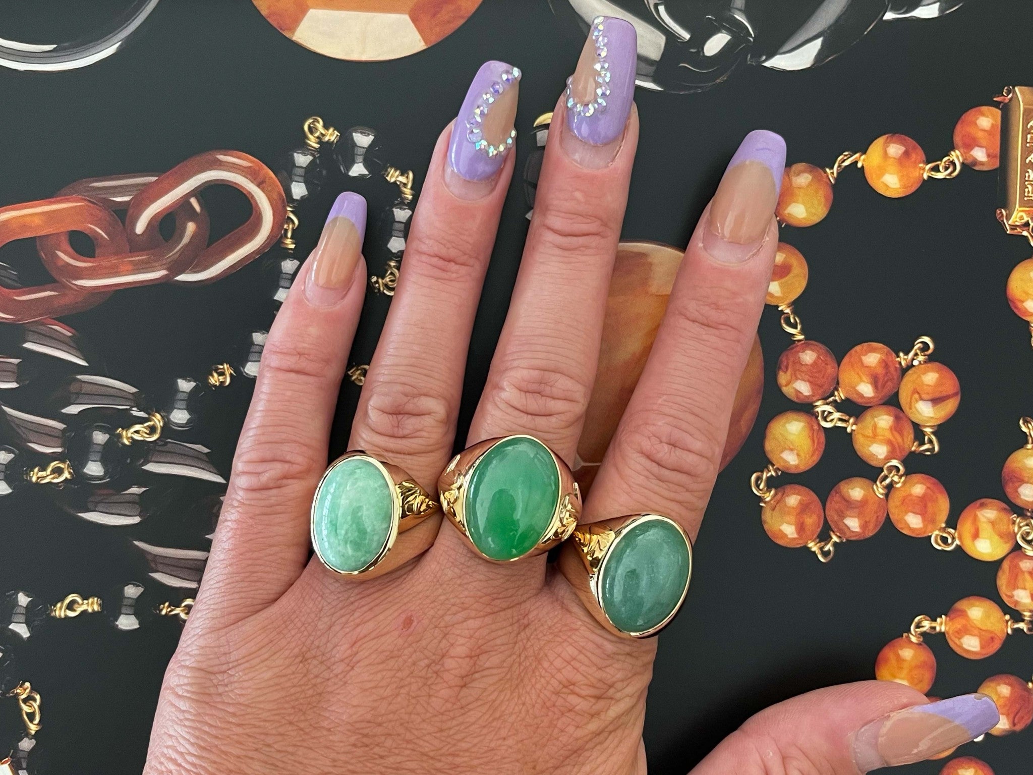 (Actual color of jade may slightly vary depending on screen calibration, lighting or camera settings. Please see image of ring on hand for more accurate color.)