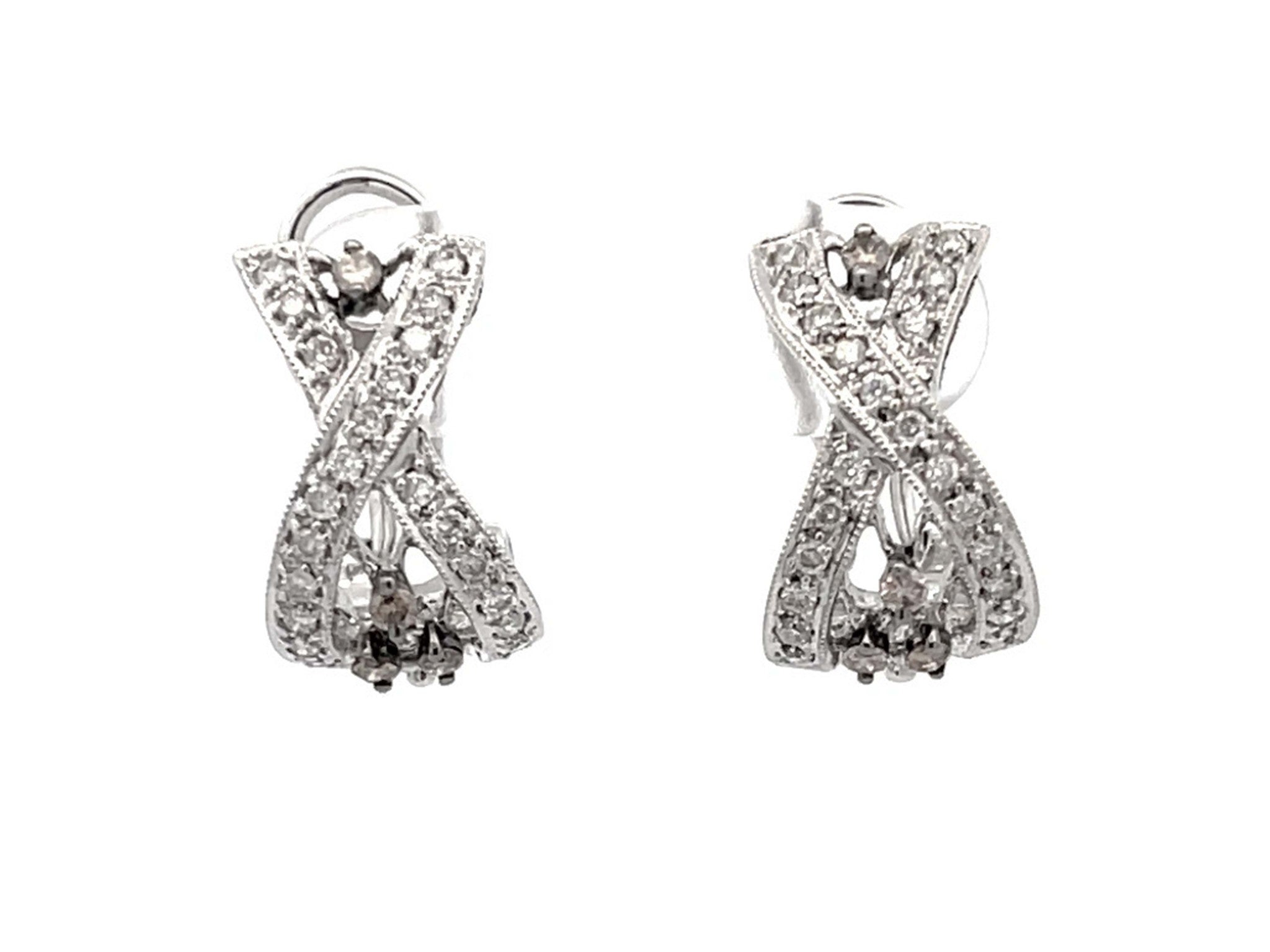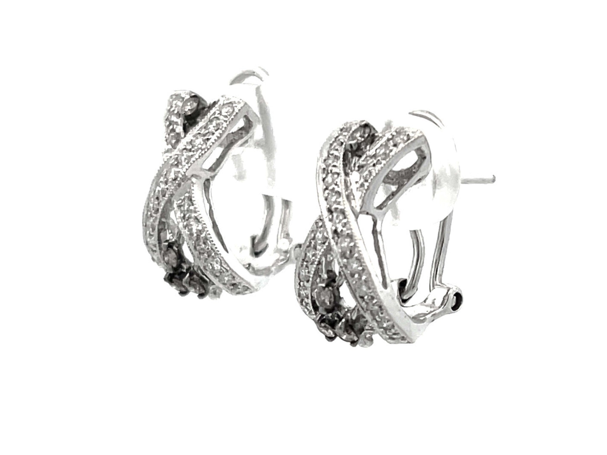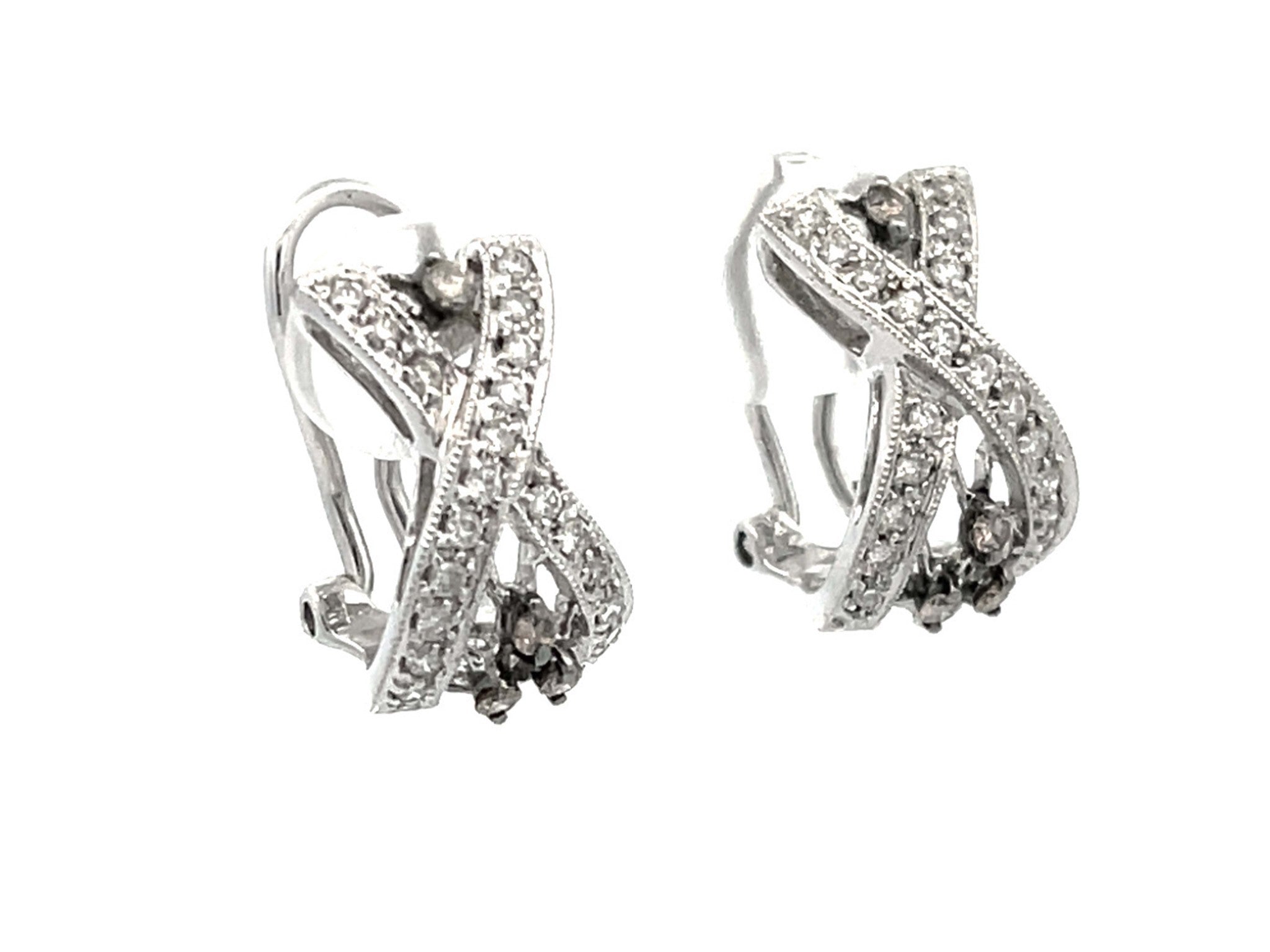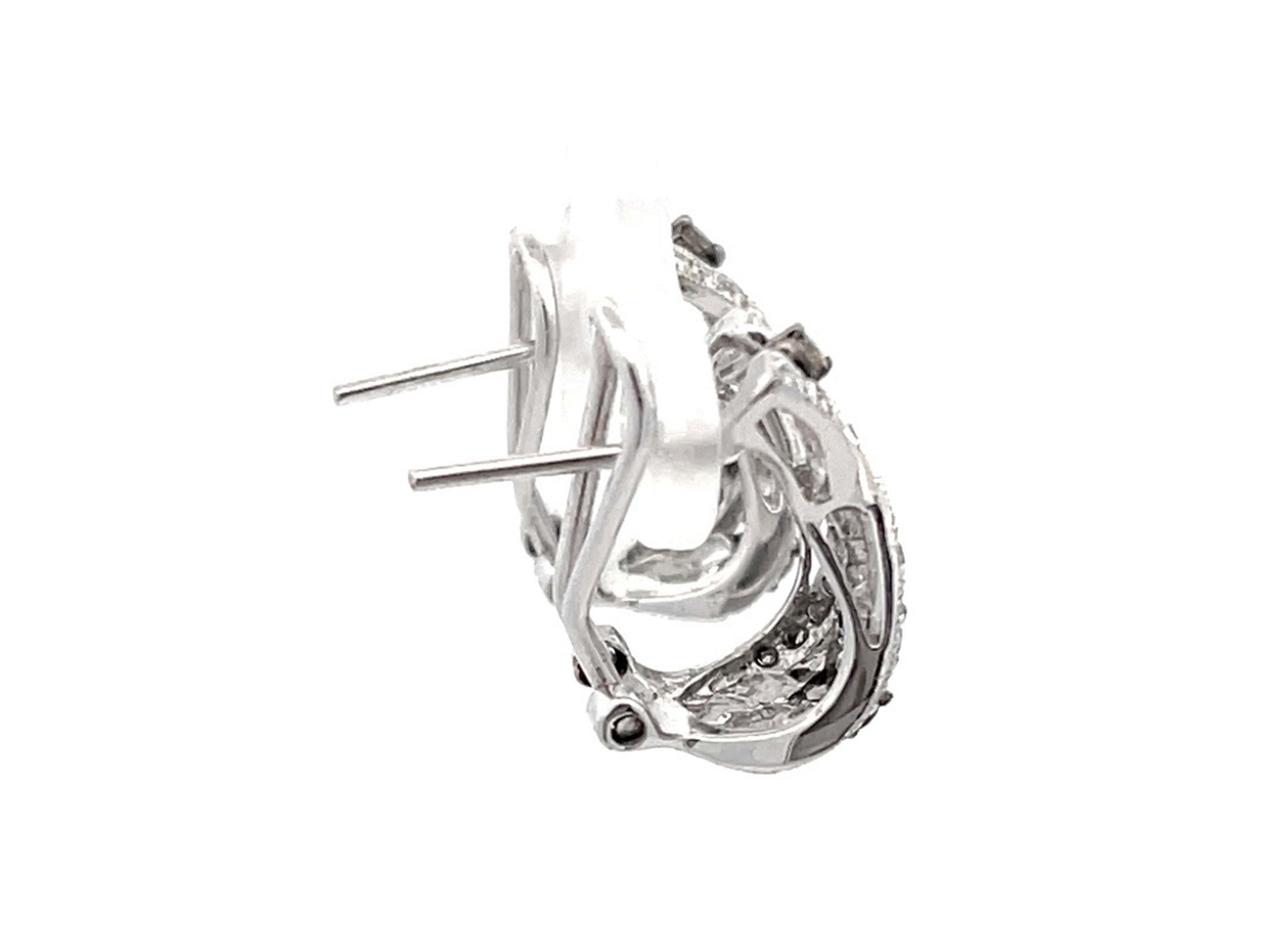 Earrings Specifications:Metal: 18k White GoldTotal Weight: 5.3 GramsEarring Measurements: 15.7 mm x 9 mmDiamonds: 42 White Round Brilliant Cut Diamonds and 8 chocolate diamondsColor: H-IClarity: SI1-SI2Total Diamond Carat Weight: ~ .20 carats white diamonds + 0.08 chocolate diamondsCondition:...